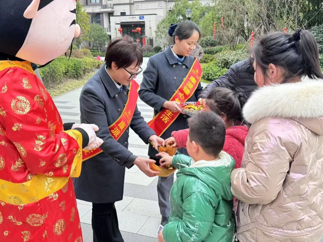 年味渐浓,福利先行。时值小年,我们用一份份心意,传递新春的美好,特备新春好礼和小年麻糖,为业主家人们送上诚挚的新春祝福;书法写春联活动温情启幕,邀请书法爱好者现场挥毫泼墨,一笔一划皆是祝福,业主家人们可到场领取专属春联,把新春的吉祥带回家;更有工作人员化身“送福使者”,上门为业主送上春联与美好祝愿,让暖意直达家门,拉近心与心的距离。